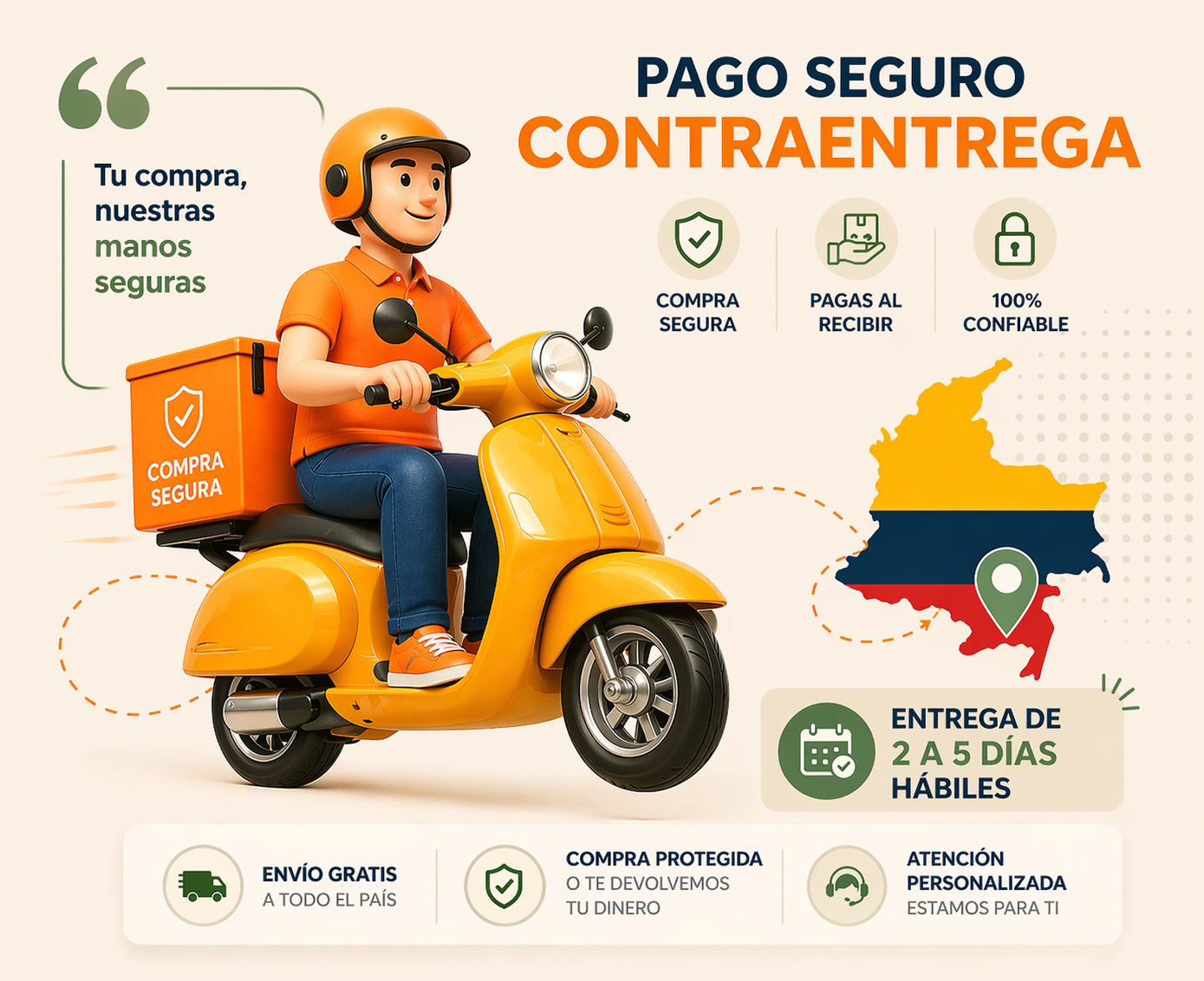 Sabemos que comprar en internet puede generar dudas, por eso te ofrecemos pago contra entrega.